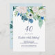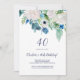 Cette invitation classique aux fêtes de 40e anniversaire de fleurs blanches est parfaite pour une fête d'anniversaire de printemps. L'élégante décoration florale est composée de roses blanches et d'ivoire, de pivoines et de chrysanthèmes, avec des touches de fleurs d'aquarelle bleu périvent et de feuillage vert.
