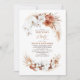 Orchidées blanches, fleurs botaniques en terre cuite, gazon de la pampa et invitations à la fête d'anniversaire de boho plante exotiques