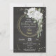 rêve romantique fleurs blanches et vert feuille botanique couronne noire invitation fête d'anniversaire Les détails de la parties scintillant sont simulés