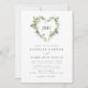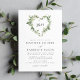 Élégant faire-part de mariage botanique avec vos initiales monogrammes niché dans un cadre délicat en forme de coeur de la respiration du bébé blanc, des feuilles de fougères vert sauge et un feuillage vert vif. Ce charmant design floral blanc est parfait pour les mariages de jardin et idéal pour les fêtes de printemps ou d'été, offrant une touche fraîche et romantique à votre journée spéciale.