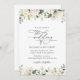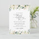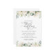 Invitations amis et famille dans le style et donner le ton pour votre journée spéciale avec ce faire-part de mariage charmant. Le design présente des fleurs d'aquarelle blanche et de la verdure sur l'arrière - plan blanc.