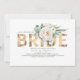 Fleurs blanches élégantes et uniques, feuillage verdoyant et typographie or invitations nuptiales à la douche