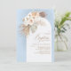 Invitation Fleurs blanches Pampas Grass Boho Baptême bleu