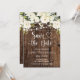 Annoncez votre jour spécial avec une élégance intemporelle en utilisant cette superbe carte de Save the Date de mariage florale blanche rustique ! Avec des roses blanches luxuriantes et un bouquet floral, un feuillage vert frais, des guirlandes lumineuses délicates et une belle écriture en forme de cœur sur un fond en bois sombre chaud et riche. Un design classique et raffiné parfait pour les mariages de jardin au printemps et en été, les cérémonies de grange rustiques et toute célébration romantique où les fleurs blanches épurées sont les vedettes !