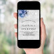 Invitation Fleurs bleues et paillettes argentées glamour pour