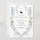 Invitation du Graduation Party avec une couronne de fleurs bleu aquarelle et verdure. Personnalisez avec vos informations ou cliquez sur "cliquer pour customiser plus loin" pour ajuster le type de police, la taille, la couleur.