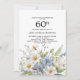 Belle invitation de 60ème anniversaire de style champêtre mariage avec de jolies fleurs bleues et marguerites blanches.