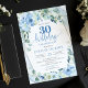 Invitation Fleurs bleues romantiques eucalyptus et argent 30e