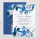 Invitation Fleurs Bleues Roses Blanches sur Cristal Blanc