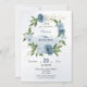 Invitation fleurs bleues verdure botanique couronne anniversa
