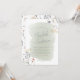 Cet élégant design présente un revêtement de brosse couleur pastel vert pastel peint à la main. Il y a des arrangements floraux simples dans deux des coins, accentués par des doublures d'or faux. Le nom de la mariée apparaît dans la calligraphie d'écriture bleue poussiéreuse. Les détails de la douche apparaissent ci-dessous. Les cartes s'inversent vers un motif boho des fleurs et de la verdure sur le devant. Cliquez sur "Personnalisez ce modèle" pour changer le texte et faire vos propres invitations de douche. Ce design peut également être customisé pour le brunch, le brunch et le mousseux, le déjeuner nuptial et les soirées à thé. Consultez le lien de collection sur cette page ou visitez notre magasin pour plus de dessins. N'hésitez pas à me contacter si vous avez besoin d'aide sur la personnalisation !