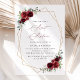 Invitations amis et famille dans le style et donner le ton pour votre journée spéciale avec cette charmante invitation d'anniversaire. Le design présente des fleurs d'aquarelle bordeaux, de la verdure et un cadre doré sur un arrière - plan blanc.