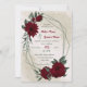 Joli faire-part de mariage unique avec des fleurs bordeaux romantiques et des feuilles verts sur un beau cadre géométrique. POUR PLUS DE PRODUITS CORRESPONDANTS cliquez sur la collection ci-dessus ou contactez-moi.