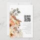 Fleurs Citrouille Automne Nous Nous Marions Code QR. Ajoutez votre code QR à votre site web de mariage au verso, cela fait une option pratique pour que vos invités répondent et voient tous les détails sans avoir besoin de cartes de réponse et de détails séparées. Un ensemble de texte manuscrit pour Nous Nous Marions et le reste du texte que vous pouvez facilement personnaliser. Des fleurs de couleur automnale et une citrouille descendent le long du côté gauche et traversent le bas et sont également au verso.