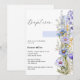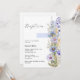 Un fond blanc, avec une grande croix bleu clair décorée de fleurs bleues. Personnalisez et ajoutez le nom et les détails détails.