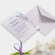 Elégante carte de mariage à thème bleu violet lavande lilas avec un élégant bouquet de bourgeons roses couleur bleu poussiéreux, marine, violet et lilas. Le dos de l'invitation a une belle lavande florale avec le monogramme de la mariée et du marié.