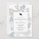 Invitation du Graduation Party avec une couronne de fleurs bleu aquarelle et verdure. Personnalisez avec vos informations ou cliquez sur "cliquer pour customiser plus loin" pour ajuster le type de police, la taille, la couleur.