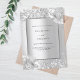 Arrière - plan à l'aspect argent faux décoré de fleurs, fleurs et parties scintillant faux argent, scintille. Personnalisez et ajoutez vos noms et les détails de votre fête. Lettres noires.