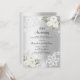 Pour un 25ème anniversaire de mariage élégant et romantique. Un faux arrière - plan argenté décoré de fleurs blanches, de roses et de dentelle blanche. Personnalisez et ajoutez vos noms et détails.