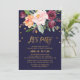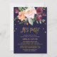 Cette carte d'invitation florale d'automne avec un fond de couronne "Let's Party" est parfaite pour un événement ou une fête d'automne. Le design présente un magnifique bouquet de fleurs rose saumon, pêche orange et bordeaux marsala avec une typographie en faux papier d'or et des confettis. Le fond présente une superbe couronne de fleurs avec les mots "Let's Party".