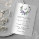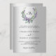 Un arrière - plan faux argenté. Une couronne fleurie faite de fleurs de lavande et de verdure d'eucalyptus aquarellée. Personnalisez et ajoutez vos initiales, noms et détails monogrammes. Texte noir.