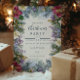 Apportez une touche de sophistication à la saison avec ce design de Noël pourpre et bleu poinsettia. Encadré de verdure luxuriante, de sprigs de lavande et de fleurs rustiques, il allie charme vintage et palette de couleurs fraîches et enchanteresses, parfaites pour des vacances élégantes.