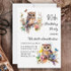 Invitation à la fête du 90e anniversaire avec des peintures d'une adorable petite chouette assise parmi les fleurs dans les branches d'un arbre. Contactez-moi pour obtenir de l'aide sur vos personnalisations ou pour demander des produits Zazzle correspondants ou coordonnés supplémentaires pour votre célébration.