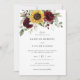 Fleurs de soleil florales Faire-part de mariage vert bordeaux. Elégant Faire-part de mariage Floral Bourgogne. Floral Rustique Faire-part de mariage