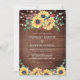 Ces invitations de mariage rustiques à l'aquarelle présentent un design de tournesol aquarelle avec des feuilles d'eucalyptus, des feuilles d'automne et des lampes à cordes sur un arrière - plan en bois. Personnalisez-les avec votre texte. Produits correspondants disponibles.