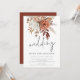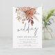 Fleurs de terre cuite rustiques, mariage à l'écriture informelle. Des fleurs élégantes, des baies et des herbes dans des tons doux de brun terre cuite et de crème coulent vers le bas depuis le haut. Mariage est dans un style d'écriture manuscrit tendance. Personnalisez facilement le reste du texte avec vos propres détails. Pour la commodité de vos invités pour répondre et voir plus de détails, ils peuvent scanner le code QR menant à votre site web de mariage. Votre code QR sera généré automatiquement pour mettre à jour l'exemple de code dans le design, lorsque vous changerez simplement l'URL d'exemple dans le modèle avec l'URL de votre propre site web de mariage.