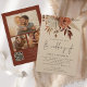 Fleurs de Terracotta Rustique 3 Photos Code QR Mariage. Des florales élégantes et des baies et des herbes dans des couleurs automnales brun terracotta et crème, coulent du haut. Le Mariage De est dans un style d'écriture manuscrite. Personnalisez facilement le reste du texte avec vos propres détails. Remplacez les trois exemples d'images au dos par les vôtres. Ajoutez votre code QR à votre site web de mariage au dos, ce qui en fait une option pratique pour que vos invités répondent et voient tous les détails sans avoir besoin de cartes de réponse et de détails séparées. Votre code QR sera généré automatiquement pour mettre à jour l'exemple de code dans la conception, lorsque vous changerez simplement l'URL exemple dans le modèle avec l'URL de votre propre site web de mariage.