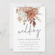Fleurs rustiques en terre cuite, écriture informelle pour mariage. Des fleurs élégantes, des baies et des herbes dans des tons doux de brun terre cuite et de crème coulent vers le bas depuis le haut. Mariage est dans un style d'écriture manuscrit tendance à la mode. Personnalisez facilement le reste du texte avec vos propres détails. Pour la commodité de vos invités pour répondre et voir plus de détails, ils peuvent scanner le code QR menant à votre site web de mariage. Votre code QR sera généré automatiquement pour mettre à jour l'exemple de code dans le design, lorsque vous changerez simplement l'URL d'exemple dans le modèle avec l'URL de votre propre site web de mariage.
