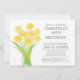 Commencez votre fête d'anniversaire avec notre joli bouquet de tulips invitation avec un bouquet contemporain de fleurs de tulipes jaunes sur un arrière - plan blanc. Retournez notre fête d'anniversaire aux fleurs florales pour les adultes pour trouver le dos jaune assorti pour une touche spéciale supplémentaire! Disponible dans notre boutique dans une variété de choix de couleur tulipe. Un choix parfait pour un 21ème anniversaire, 30ème anniversaire, 40ème anniversaire, 50ème anniversaire.