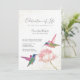 Invitation de célébration de vie avec deux beaux colibris à l'aquarelle ornant une illustration de fleur rose avec une corde dorée. Conçu dans une palette de couleurs vives avec du rose, du bleu, du violet, de l'orange, du jaune et du vert.