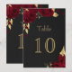 élégant personnalisable numéro de table carte fleurs bordeaux avec quelques feuilles or or noir carte numéro de table