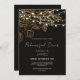 Fleurs dorées mignonnes et feuilles sur un arrière - plan noir, avec des lampes à cordes blanches.