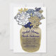 Cartes d'invitation Fleurs en pot Mason Rustique Bleu Or Floral Mariage