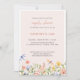 Aquarelle fleurs sauvages, feuilles, libellules dans la palette douce aquarelle de rose, bleu jaune et vert décorent ce couple romantique et élégant douche invitation dîner.