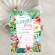 Ces invitations comprennent des feuilles de palmiers avec des fleurs tropicales et des glaces sur un arrière - plan bleu. Cette invitation est facilement customisée pour votre événement en ajoutant simplement vos détails.