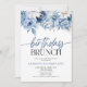 C'est une invitation à Brunch Party d'anniversaire moderne et élégante à fleurs bleues et bleues.