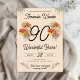 Honore neuf décennies de moments chéris avec cet élégant design floral ! Un "90" est entouré de fleurs douces d'orange et de rose, de feuilles délicats dans des tons pastel doux, ce qui en fait une invitation parfaite pour une fête de 90ème anniversaire. Ajoutez votre nom et les détails de l'événement pour créer une conservation significative. C’est une belle façon de rassembler des êtres chers pour une journée de joie et de réflexion !