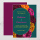 Faire-part de mariage floral moderne jaune rose vert. Faites une déclaration audacieuse et vibrante avec ce faire-part de mariage floral moderne jaune, rose chaud et vert, posé sur un fond turquoise vert saisissant. Présentant un mélange animé de fleurs d'inspiration tropicale dans des teintes vives, ce design allie une élégance contemporaine à un charme ludique. Le riche fond turquoise met en valeur les fleurs éclatantes, créant un look frais et stylé parfait pour les mariages de printemps et d'été. Avec une typographie élégante et une mise en page moderne, cette invitation est idéale pour les couples qui souhaitent ajouter une touche amusante, colorée et sophistiquée à leur célébration de mariage.