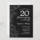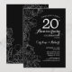Invitation de fête d'anniversaire de mariage de 20 ans à thème floral noir et blanc. Design moderne minimaliste avec des dessins au trait botaniques et une police de caractères script. Carte d'invitation élégante parfaite pour une célébration élégante. Peut être personnalisé pour n'importe quelle année de mariage. Cartes d'invitation imprimées sur Zazzle ou modèle numérique imprimable à télécharger instantanément.