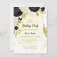 Fleurs noires et blanches romantiques avec or feuille botanique invitation à la fête d'anniversaire Les détails de la parties scintillant sont simulés.