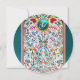 Design floral élégant et classe avec tulipes rouges, oeillets, turquoise, fleurs bleu aqua, fleurs de printemps, tourbillons, fleurs élaborées à partir de motifs turcs XVIII ème siècle et pierre gemme aquamarine 3D brillante par Bulgan Lumini (c) .Facile à customiser avec vos initiales et le texte propre en tant que cartes faire-part mariages, à sauver la date, merci cartes, douches nuptiales, 16 anniversaires, fêtes, douches fiançailles d'anniversaire, ou à peu près tout événement que vous souhaitez!