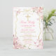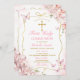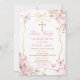 Fleurs roses ÉDITABLES Fille Papillon Première Sainte Communion Invitation Élégant Blush Rose Cadre Or Croix Christening Primera Comunión Invitación