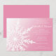 Invités Invitations à votre prochaine cérémonie de mariage hivernal de décembre, janvier ou février au pays des merveilles et réception avec l'Invitation de mariage hivernal de Pink Snowflake. Cette élégante invitation de mariage d'hiver personnalisée présente un design complexe de flocon de neige blanc sur arrière - plan à dégradé rose. Disponible sous forme d'invitation imprimée à l'envoi ou en téléchargement numérique pour un partage numériquement en ligne facile.