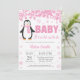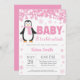 Invitation de flocon de neige de baby shower de fille de rose d'hiver de pingouin. Bébé son invitation extérieure froide de baby shower. Flocon de neige rose. Invitation de baby shower de fille. Invitation de baby shower de vacances d'hiver. Arrière - plan blanc. Pour davantage de personnalisation, cliquez sur svp la "personnaliser il" bouton et utilisez notre outil de conception pour modifier ce modèle.
