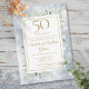 Avec des feuilles d'eucalyptus aquarelles représentant une végétation botanique sur un fond de flocons de neige hivernaux. Cette invitation d'anniversaire chic en or peut être personnalisée avec les détails de votre célébration d'anniversaire de 50 ans en typographie moderne or. Conçue par Thisisnotme©