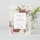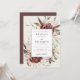 Éléments : roses d'aquarelle élégants et verdure autour d'un cadre délicat. Vos noms et informations apparaissent dans les polices serif modernes. Couleurs : bordeaux, marsala, crème, vert, marron. Thèmes : boho, bohème, rustique, automne, automne, hiver, tons terre, neutres, vintage. Collection : Rustic Boho Marsala Cream Floral Mariage Collection. Type de produit : Invitations de mariage